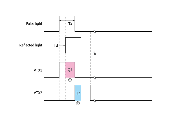 The number of electrons generated in each pulse emission is several e-. Therefore, the operation shown in Figure 4 is repeated several thousand to several tens of thousands of times, and then the accumulated charge is read out. The number of repetitions depends on the incident light level and the required accuracy of distance measurement.