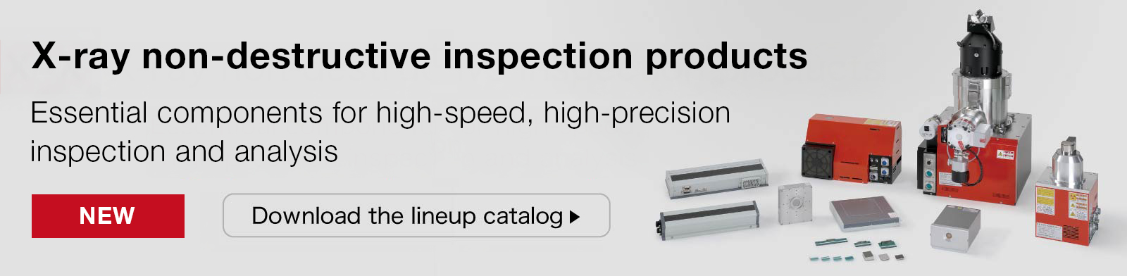 Cameras useful for in-line imaging applications requiring high-speed operation with high sensitivity. While conventional line sensor cameras suffer from low brightness under high-resolution imaging, X-ray TDI cameras improve the image brightness, resulting in enhanced images. Most appropriate for imaging linearly moving objects or where the aspect ratio is significantly asymmetric. Vertical X-ray TDI cameras that can be installed in narrow spaces are also available.