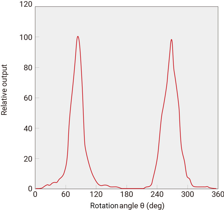 The graph below shows the response characteristics of the THz PMT for each polarization direction. By using this characteristic, it is also possible to measure the polarization direction of the incident THz wave.