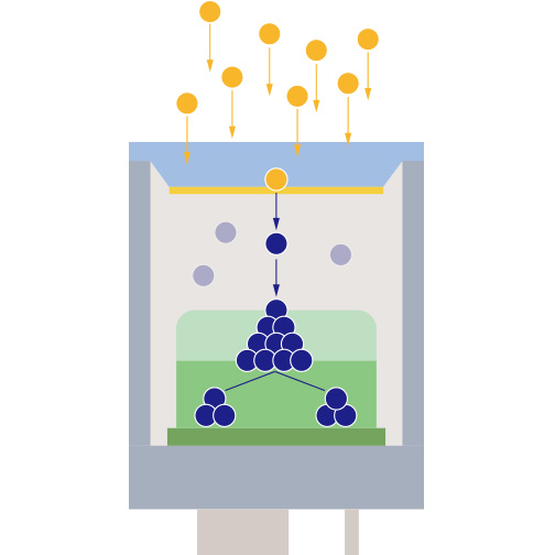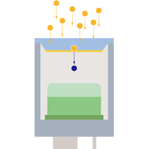 Photoelectrons from the cathode are now accelerated into the silicon. The first signal amplification occurs when the accelerated electrons hit the silicon, causing the release of additional electrons. This step has the highest gain of the two amplification steps.