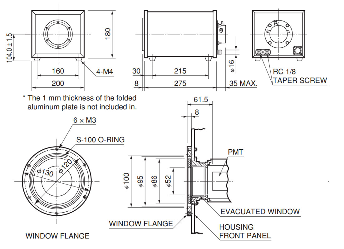 | Optical Window Material | Evacuated double-pane synthetic silica window with heater (185 nm to 2200 nm) |