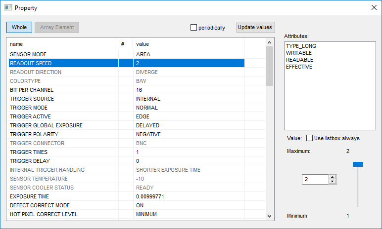 • (ExCap4) Launch ExCap4, click the Prop icon and navigate to Readout Speed. Select the appropriate speed if not selected and try to acquire images.