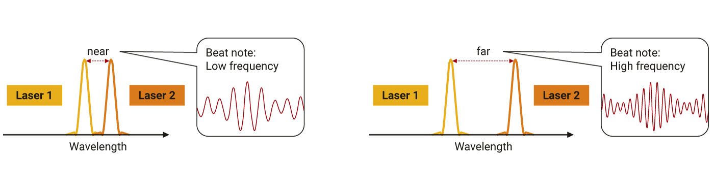 A frequency of beat-note comes higher when the emission wavelength of two lasers are far way, therefore, the photodetectors with high response frequency are required to detect beat-note covering broader wavelength range.