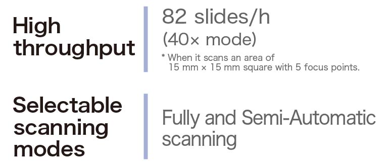 | Throughput *1 | 20× mode | More than 82 slides/h |