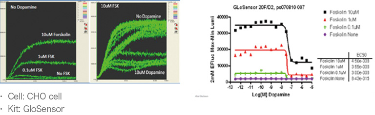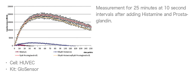 Analysis of time course of cAMP using HUVEC expressing GloSensor (Promega)