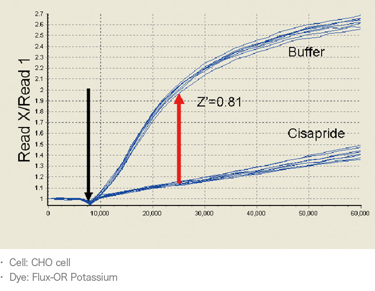 Evaluation of Nav 1.5-CHO cells using FRET-type voltage sensitive dye (VSP)
