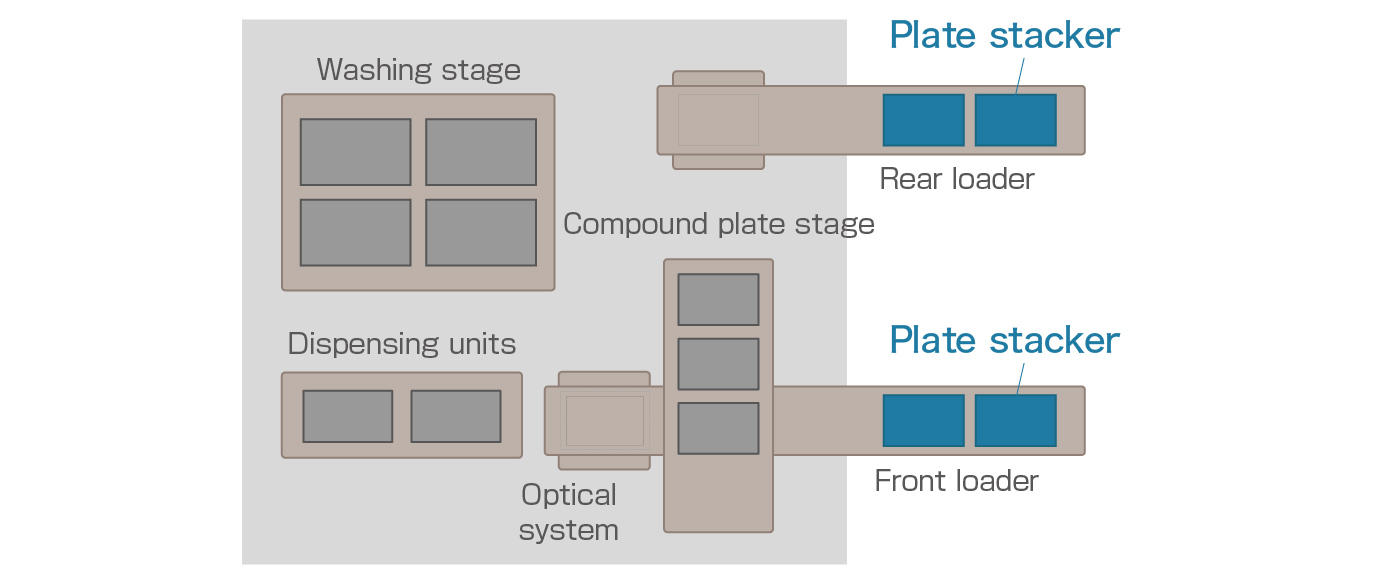 | Compound plate | Rear loader × 1, Compound plate stage (manual exchange) × 3 | |