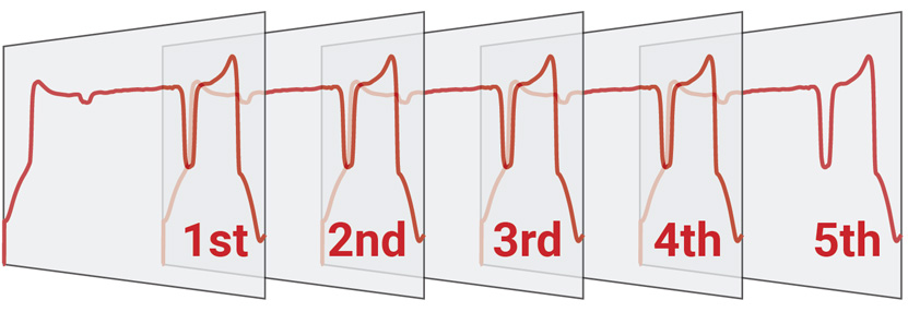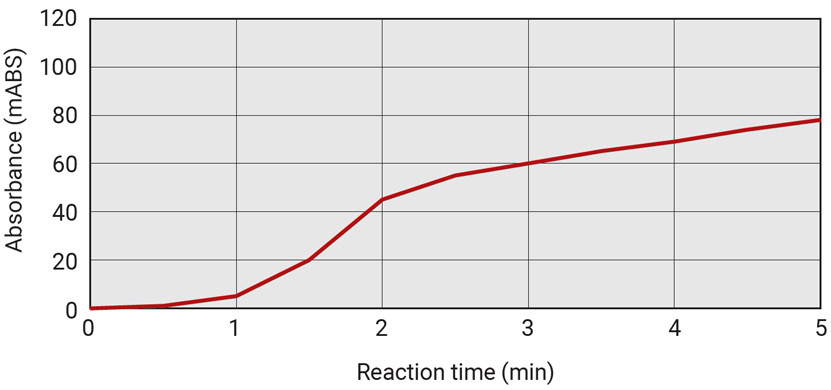 This mode measures the reaction process of one reagent and follows its changes over time. This is effective in checking the reaction speed of each reagent and in analyzing time-course changes in color development and fluorescence intensities.
