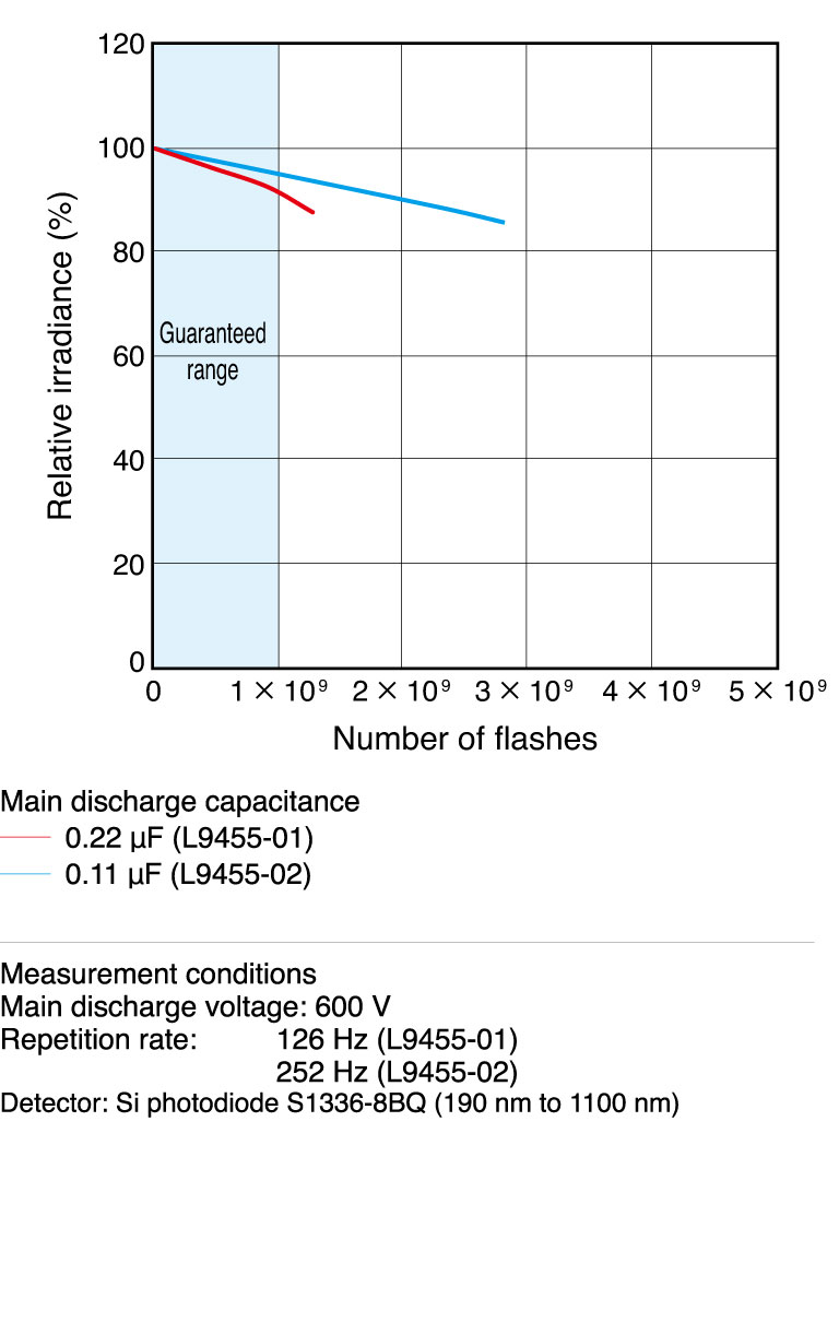 *5: At 5 W operation ([High-stability model] main discharge voltage: 600 V, main discharge capacitance: 0.22 μF, repetition rate: 126 Hz / [High-output model] main discharge voltage: 1000 V, main discharge capacitance: 0.2 μF, repetition rate: 50 Hz)