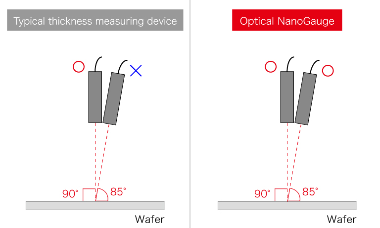 The Optical NanoGauge enables measurement with a variation as small as 0.39 nm (0.047%) within an angular variation of 0° to 5°.