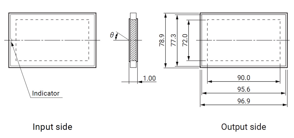 F2396-04 is a microchannel plate (MCP) with a rectangular effective area measuring 90.0 mm × 72.0 mm.