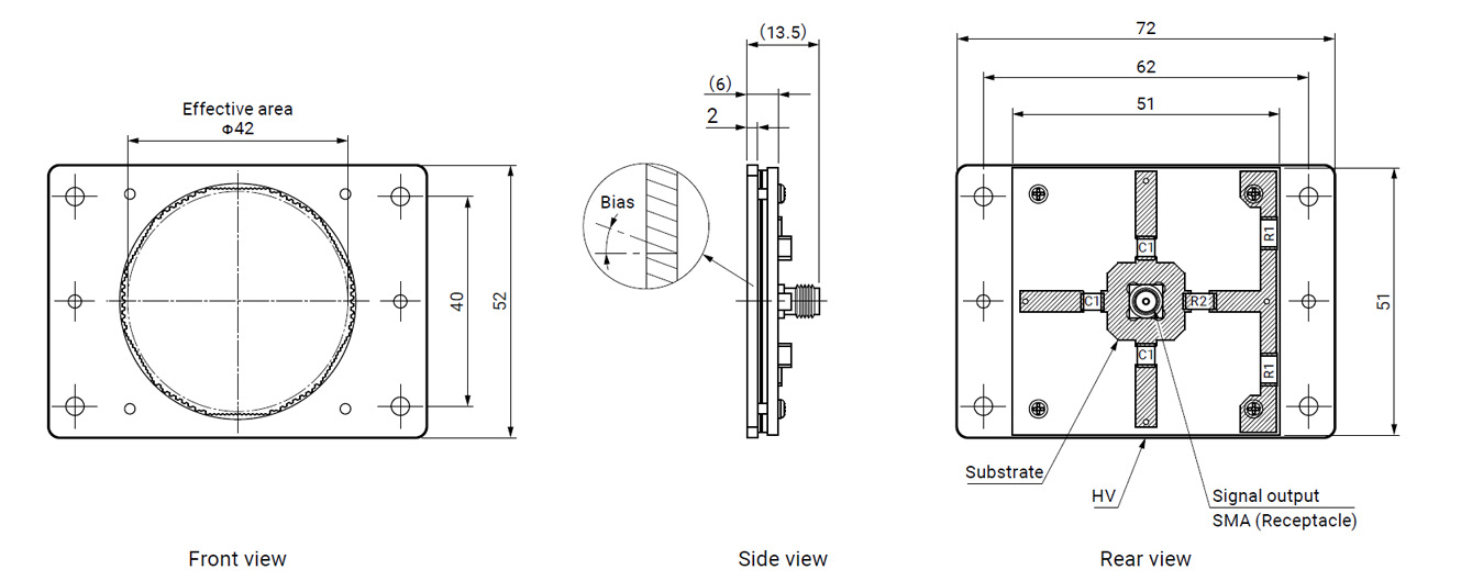 *2: Supply voltage: 1.0 kV/MCP, vacuum: 1.3 × 10-4 Pa, operating ambient temperature: +25 °C