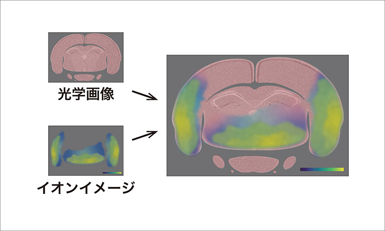 試料光学画像とイオンイメージを組み合わせることで、注目するイオン (成分)がどこで検出されたかを視覚的に解析することが可能です。
