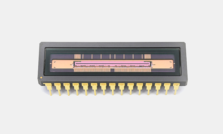広帯域波長光源の光を測定対象に入射し、干渉光を分光してからリニアイメージセンサで検出します。得られた波長情報をフーリエ変換することで、測定対象の深さ方向の像を取得します。