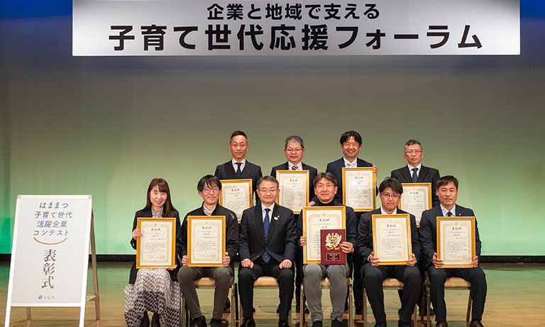 本コンテストは、子育て世代が働きやすい職場環境づくりや仕事と家庭の両立支援、多様な働き方の推進などに積極的に取り組む企業を表彰するものです。浜松市労働政策課をはじめとする有識者による一次審査を経て浜松市内9社が選出され、その後、市民による一般投票により受賞企業が決定されました。