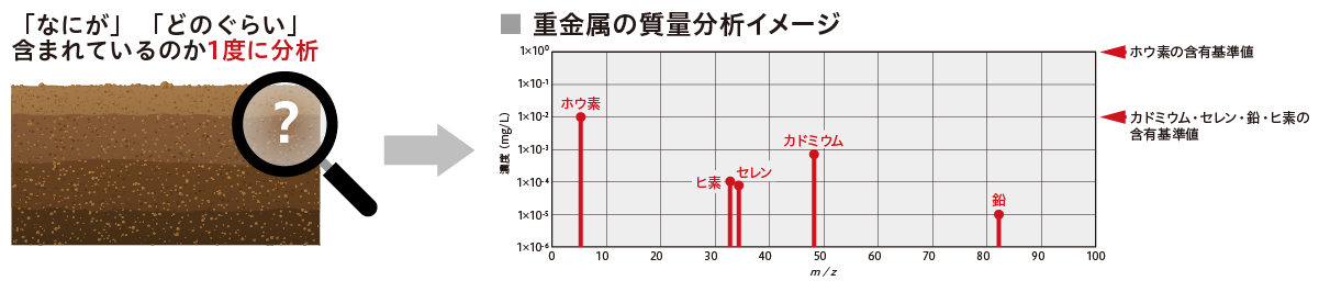 質量分析は、分析対象物をイオン化して測定する非常に精度の高い分析手法として知られており、土壌の分析にも応用されています。当社のイオン検出デバイスは、その質量分析装置の中核として活躍しています。