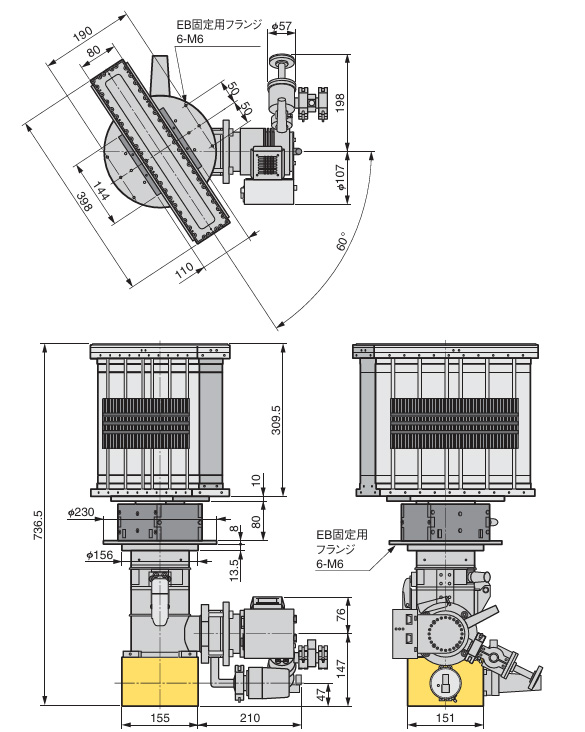 | 外形寸法 (W × H × D) / 質量 | 電子線照射源 本体 | 外形寸法図参照 / 48 kg | ー | |