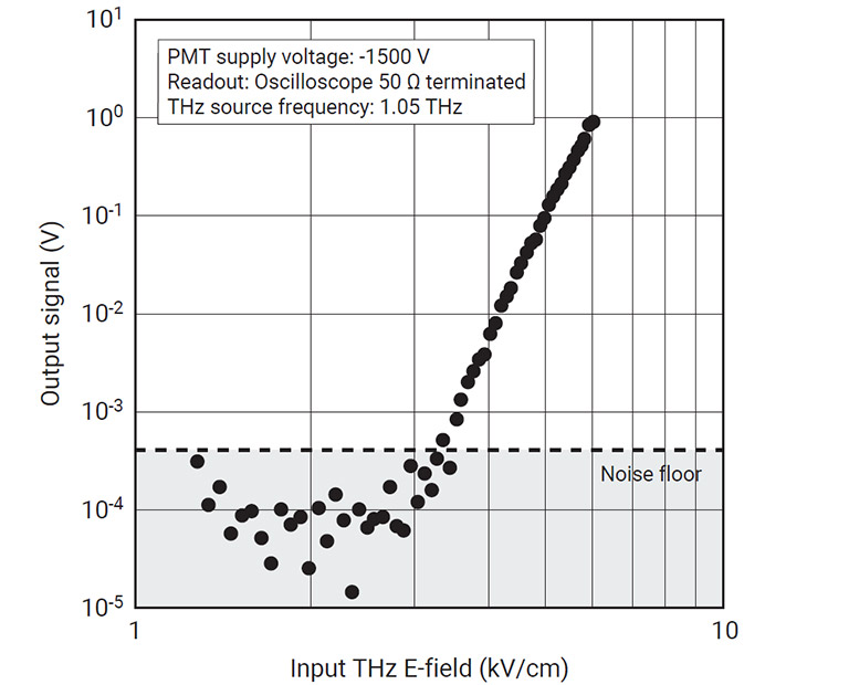 下記のグラフはTHz PMTの入出力特性を示しています。