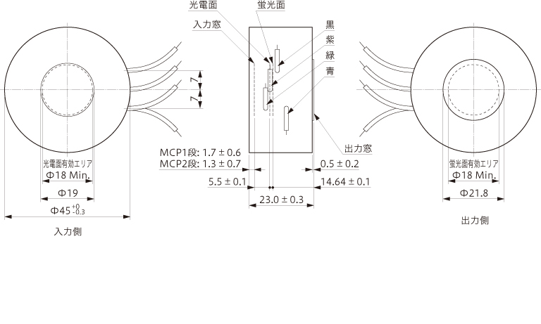 V6886U-03はCs-Te光電面を有し、感度波長範囲は160 nm~320 nm、光電面有効エリアはΦ18 mmです。