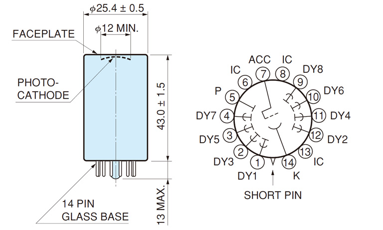φ25mmヘッドオン型 高速時間応答 スーパーバイアルカリ光電面(有効径φ12mm/感度波長範囲 160 nm~650 nm) 高速シンチレータ評価、放射線計測