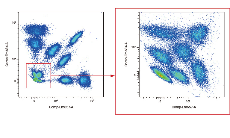 | Sample ratio | APC Single stain | Alexa Fluor 647 Single stain | APC+Alexa Fluor 647 | ||||||||||
