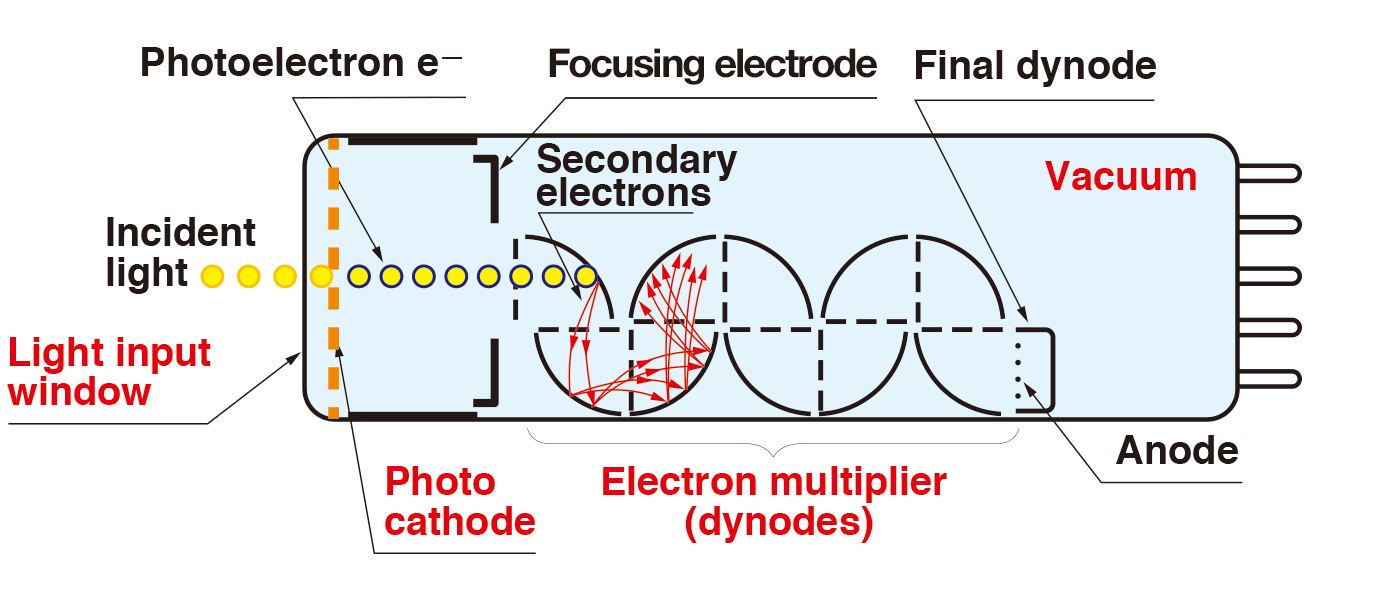 In a vacuum, only the signals are amplified so low-level light can be detected with high sensitivity.